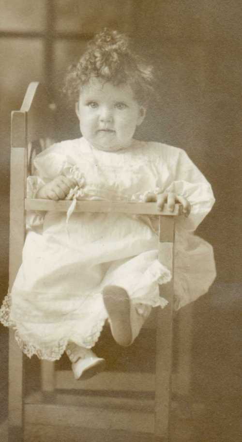 On Nov. 17, 1926 I went to school happy it was my 8th birthday. We were told very little in those days about how babies got here. All I knew Dr. Owens told me awhile before that if I was a good girl hed bring me in his large bag a baby sister. He only guess(ed) at what sex it would be for no test were ever taken. I came running home from school to see my cake + present only to find Mrs. Sudbury blocking the inside Kit. Door I did notice two layers of cake unfrosted laying on draining board when I was told to go across the street to her house + stay there till she came for me. I could imagine what was going on no mama to great me it was my birthday. Well I didnt do much playing only wonder + worry till early evening when I was brought home. There was my cake frosted but where were the little flower cups that mama always put the candles in. The candles were stuck instead in wax paper. I was told to go into the bed room mama was in there with my birthday present. I ran in to see her laying in bed with an indian baby in her arms she told me this was my baby sister. What(,) that scrany (scrawny?) black head baby couldnt be my sister.