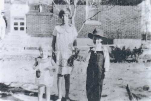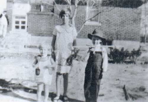 We lived the next house north of Aunt Margretta + Uncle Len I think three homes have been built in the field separating us. It was in this field I found a pile of sand Oh what fun so I set right on top of it only long enough for the large red and black ants to crawl all over me + bite. Mama strip(p)ed me right on the back step. Oh how I cried + hurt and also learned a lesson.